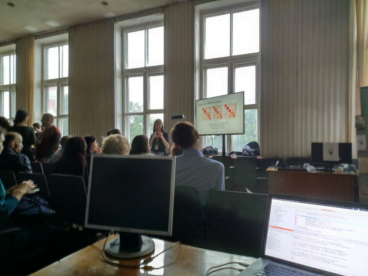 На прошлой неделе прошла замечательная конференция «Когнитивная наука в Москве: новые исследования». Как отмечают сами организаторы, конференция уже давно вышла за пределы только московской науки и на данный момент собирает исследования, проведённые как по всей России, так и за ее пределами. Конференция проходила всего один день, но за эти насыщенные десять часов было представлено порядка сотни постеров, презентация которых была очень удобно разбита на три сессии в течение дня. Также в программу конференции входили супер-интересные воркшопы. Например, я была на полезной для меня мастерской по рабочей памяти Игоря Уточкина и на увлекательном рассказе Ивана Воронина про структурное моделирование в психогенетике (про остальные воркшопы можно почитать вот здесь, много классных: http://virtualcoglab.ru/program2017.html). И, конечно, неотъемлемой частью любой конференции является общение с коллегами, информативное и продуктивное, а главное, вдыхающее силы на продолжение научных поисков. Виват организаторам! Увы, не получилось запечатлеть на фото прекрасных Марию Фаликман и Катю Печенкову, равно как и многих других организаторов, поскольку они скорее находились в состоянии волны, нежели частицы. Если у кого-то есть фотографии, делитесь!